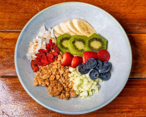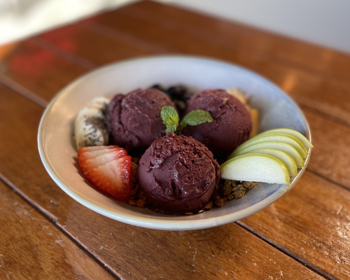 Nectar Acai, served with seasonal fruits, goji berries, chia seeds and optionally your choice of sauce.