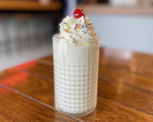 Our Vanilla Thickshake is made with rich vanilla ice cream and creamy milk, blended until thick and silky. Topped with whipped cream, sprinkles, and a cherry on top, it’s a nostalgic treat that never gets old.