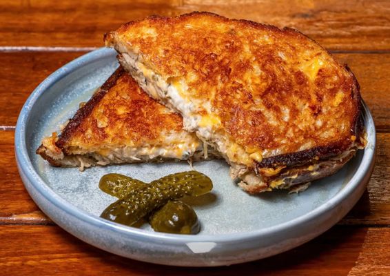 A toasted sandwich packed with our signature house-made tuna mix—featuring tangy pickled onions and spicy jalapeños, all melted together with cheddar cheese.