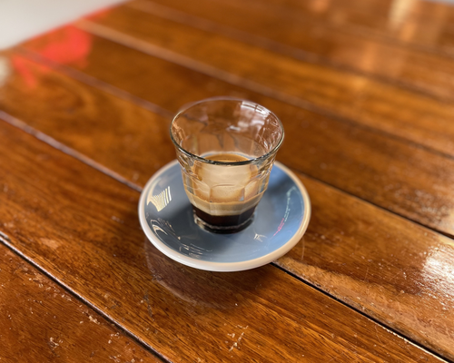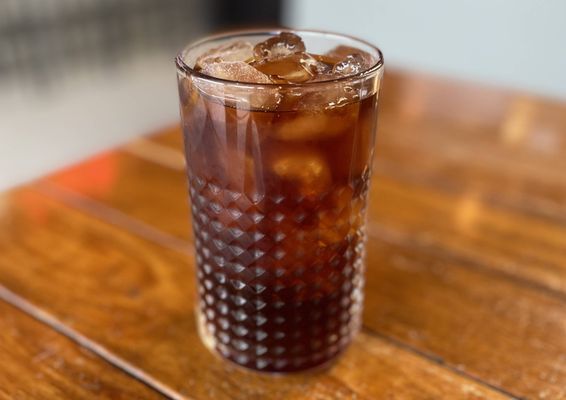 A double shot of Single O’s Collider blend, served over ice, featuring bold notes of ripe berry and dark chocolate