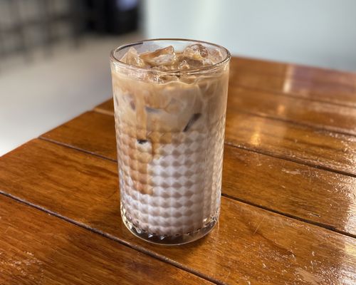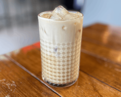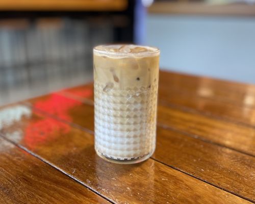 Signature iced oat latte, made with cold brew and naturally sweetened with agave syrup