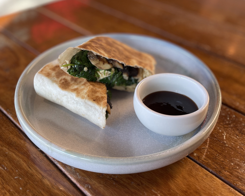 Sautéed mushrooms, eggs, spinach & your choice of sauce in a toasted wrap