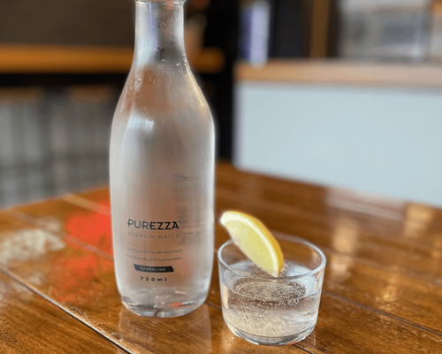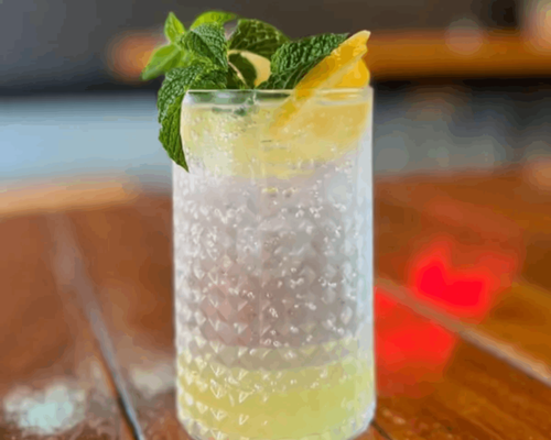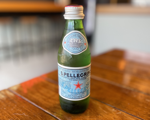 Homemade using lemon syrup and fresh lemon juice and sparkling water.