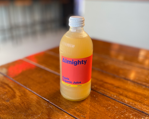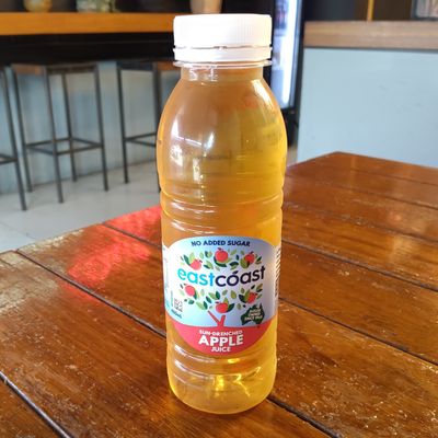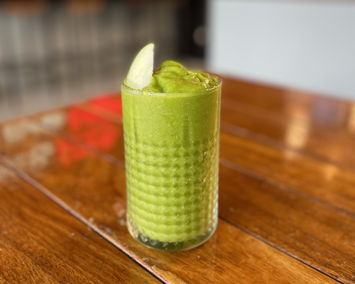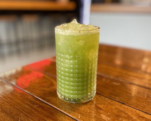 Fresh juice made with green apple, cucumber, celery, kale, and lemon