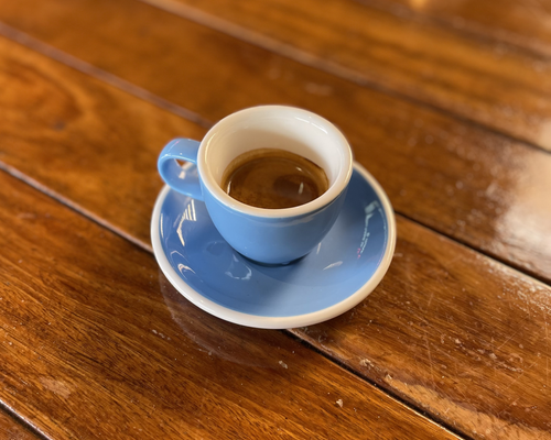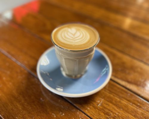 Double Ristretto filled three-quarters full with your choice of steamed milk