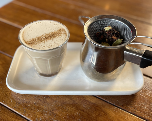 Teacraft's brewed masala chai, naturally sweetened with honey, served over ice and your milk of choice