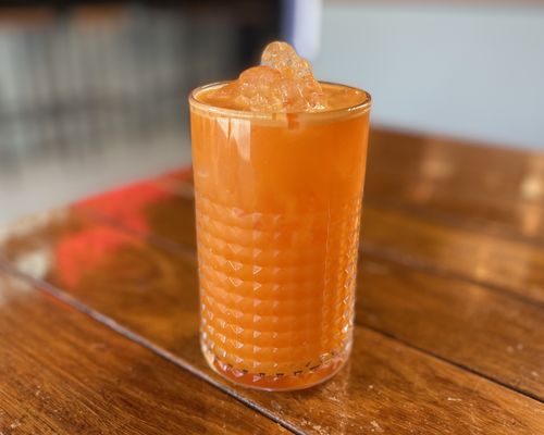 Fresh juice made with orange, pineapple, carrot, ginger, and turmeric
