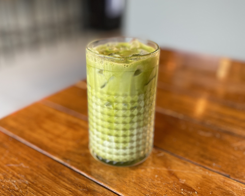Iced matcha made with 100% latte-grade matcha, your choice of milk and naturally sweetened with honey