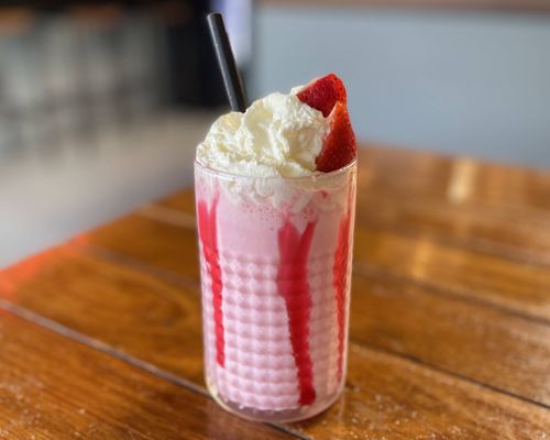 Sweet, creamy, and delicious. Our Strawberry Thickshake is a dreamy blend of ice cream, milk and strawberry syrup topped with whipped cream and finished with fresh strawberry slices for that extra pop of fruitiness.